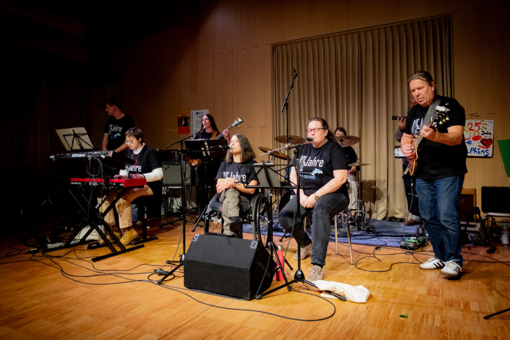 Keine Energie ist so machtvoll wie die Musik – jedes Lebewesen reagiert auf seine ganz eigene Art auf Klang und Rhythmus. Da kann es eigentlich nicht verwundern, dass wenn Menschen mit und ohne Beeinträchtigung zusammenkommen und Musik machen, einfach nur Freude übrig-bleibt und jeder den anderen mitreißt. Und wenn dann eine Band schon seit 25 Jahren sich jede Woche trifft und probt, ausprobiert und jeder sein darf, wie er ist – dann ist das eine Feier wert.